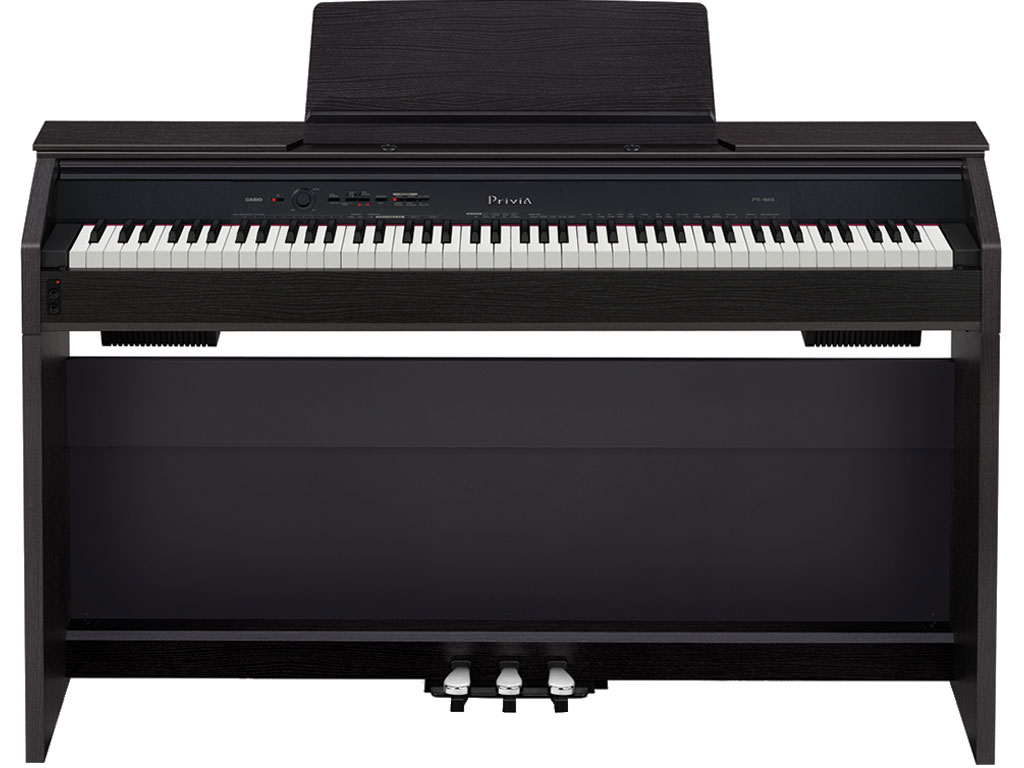 Il suono perfetto in un pianoforte compatto. Con il modello top PRIVIA vedrete i risultati della tecnologia AIR, che mostra come questi strumenti dal design compatto possano sviluppare completamente il loro potenziale sonoro. Tutti i nuovi elementi nei nuovi timbri sonori del PX-860 sono completamente convincenti quando il coperchio del PRIVIA è sollevato. Potrete apprezzare le più piccole sfumature del suono dato che può trasformare il salotto in una sala da concerto. Utilizzando la nuova funzione “Concert-Play”, si può suonare la parte di pianoforte con accompagnamento.