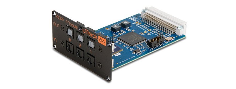 Espandi le tue capacità con la scheda opzionale uTrack24 ADAT. Questa nuova soluzione permette di dotare il tuo uTrack24 con 24 canali di segnali ADAT, e allo stesso tempo l’invio di tutte le 24 uscite delle tracce a qualsiasi mixer digitale ADAT. Il tuo uTrack24 può ora interfacciarsi direttamente con uno dei formati digitali più comuni e diffusi utilizzati nel suono dal vivo, MI, e il paesaggio audio professionale.