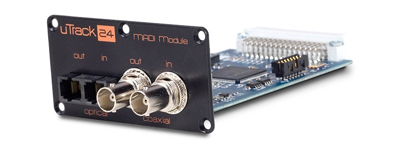 Il tuo uTrack24 è ora pronto per fare sul serio. La nuova accessibile e facilmente installabile scheda MADI integra perfettamente il tuo uTrack24 nel mondo dell’audio digitale high-end. Collega ingressi e uscite del tuo uTrack24 in console audio dal vivo, stage box, sistemi di amplificazione audio e altri dispositivi MADI. Registra la band dalla console e invia un numero enorme di singole basi musicali a qualsiasi sistema MADI, il tutto con solo 2 cavi che possono essere estesi per centinaia di metri.