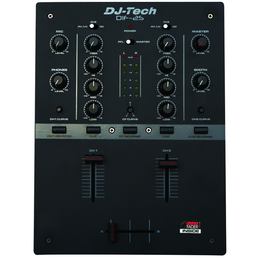 Il DJ-Tech DIF-2S DJ Scratch Mixer è dotato di un design facile da usare e performante sistema di elaborazione. Il mixer dispone di due canali, ciascuno con Equalizzatore a 3 bande, nonché controlli dissolvenza e livelli. L’inverso e curva regolare pulsanti su entrambi i canali aggiungono fascino e dettaglio per il vostro mixaggio. Le uscite per cuffie e stereo rendono DIF-2S ideale per uso dal vivo sia di registrazione a casa. Nelle esibizioni dal vivo, l’efficienza è la chiave per raggiungere un mix senza soluzione di continuità. Per facilitare questo, il DIF-2S è dotato di tecnologia TIMECODE. Questo ha connettori RCA supplementare nella parte posteriore del mixer per connettersi a un’interfaccia audio, che permette quindi per un passaggio senza sforzo tra un giradischi e DVS setup. Si tratta di una funzione intuitiva per DJ utilizzando diversi formati di musica.