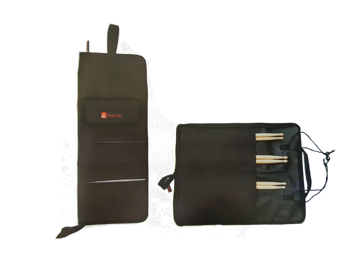 Borsa per lo stoccaggio ed il trasporto delle bacchette per batteria con maniglie e tracolla per il trasporto.