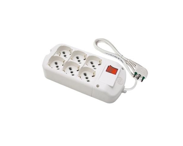- Elemento scaricatore di sovratensione protetto con fusibile 4A a sostituzione rapida. La protezione è attiva a led acceso. A led spento sostituire il fusibile con spina disinserita. A led spento il prodotto funziona come multipresa tradizionale.