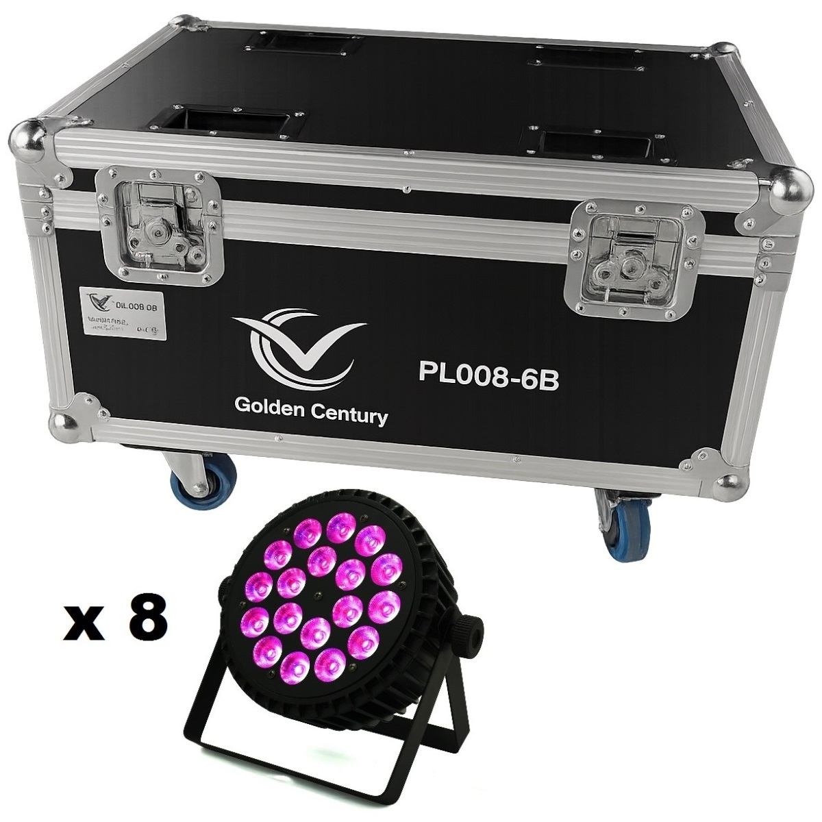 GOLDEN CENTURY PL008/6B – LED PAR 18×18 BUNDLE 8 PARLED DA 324W 6-IN-1 RGBWA-UV DMX + CASE