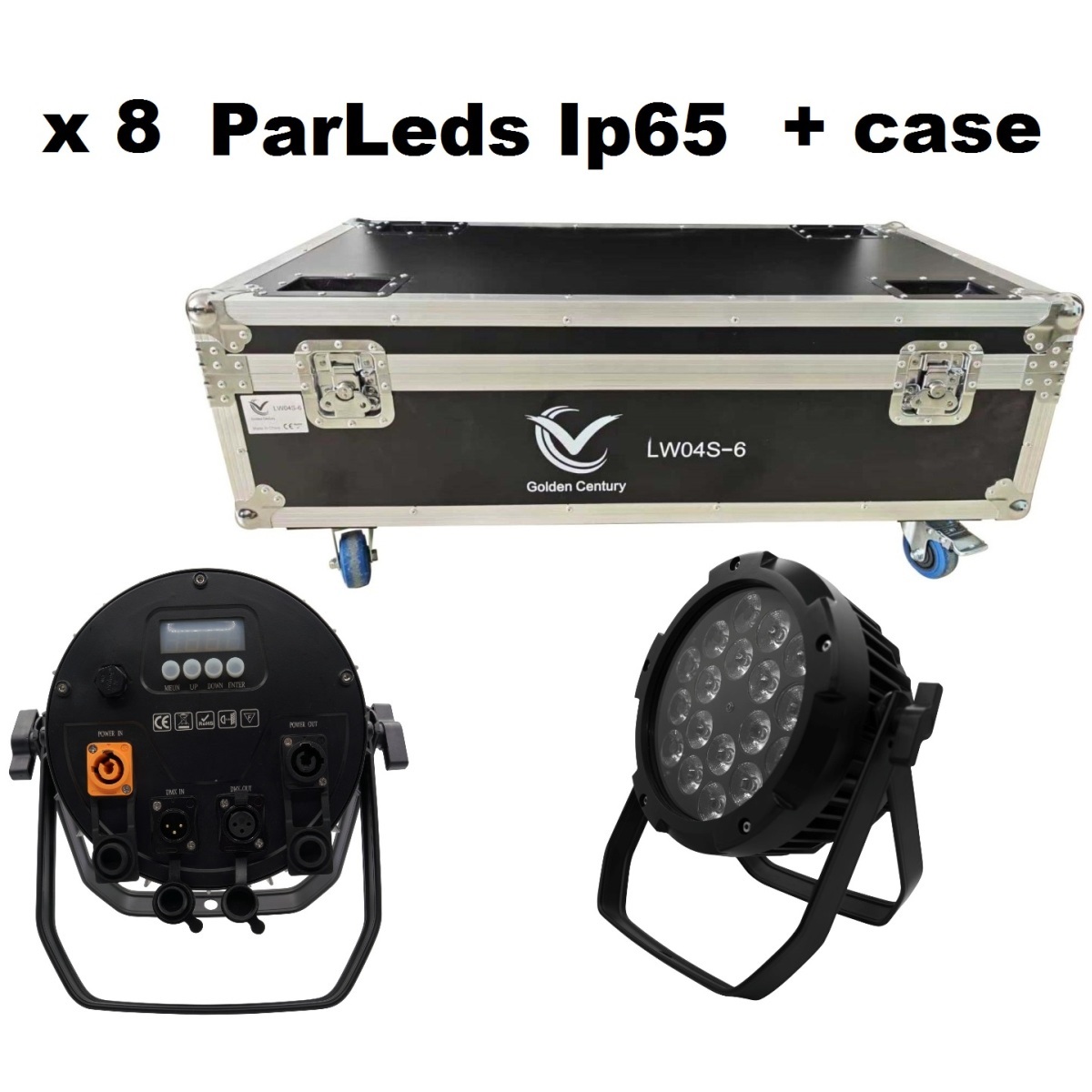 GOLDEN CENTURY LW04S/6 – LED PAR 18x18W IP65 BUNDLE 8 PARLED 324W 6-IN-1 RGBWA-UV DMX + CASE