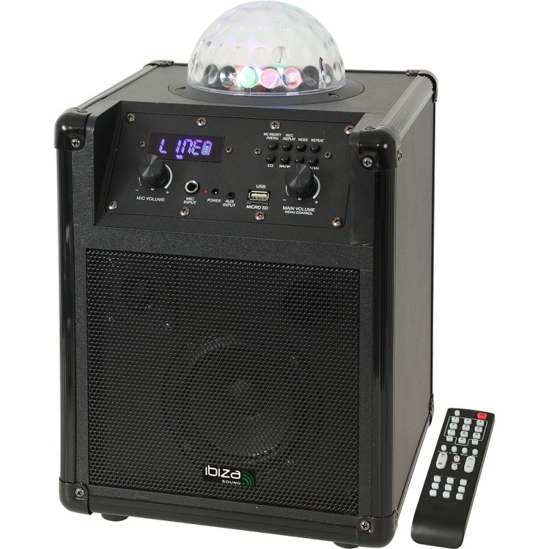 Diffusore portatile con amplificatore integrato e combinato con effetto luce a led RGB che è possibile alimentare sia da una presa di corrente che a batteria. Ideale per l’utilizzo in mobilità e per il karaoke.