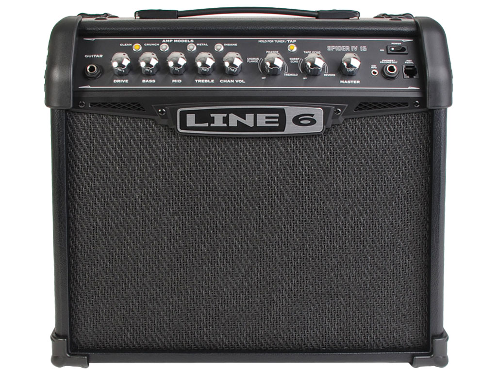 La vasta gamma di suoni dell’ampli Spider IV 15 inizia con forza, con un brillante e caratteristico suono pulito americano che poi si apre gradualmente per raggiungere la grinta dei classici amplificatori britannici vintage. Sperimenta la famigerata “Brown” distortion basata su un Marshall Plexi 100 del ’68 con Variac e canali di ingresso ponticellati, ed il bruciante suono high-gain di una Mesa Boogie Dual Rectifier.