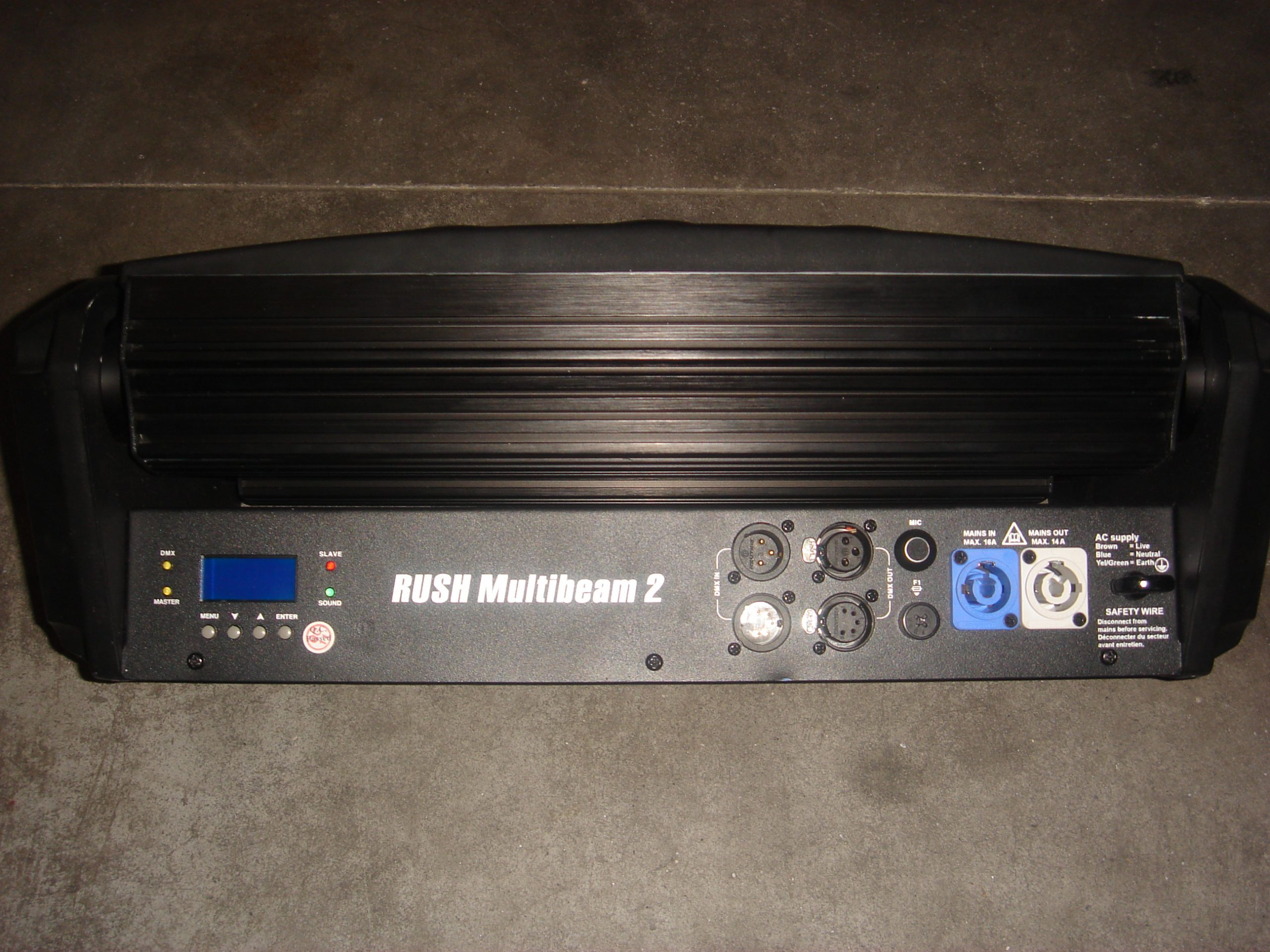Il RUSH Multibeam 2 è dotato di due barre LED mobili ciascuna con 5 fasci stretti controllabili singolarmente per potenti effetti a mezz’aria. Produce 10 fasci intensi, stretti a lunga gittata e dispone di dimmer elettronico per effetto strobo. Il Multibeam 2 viene fornito con le macro preprogrammate per gli effetti semplici. E’ controllabile via DMX o ad attivazione sonora.