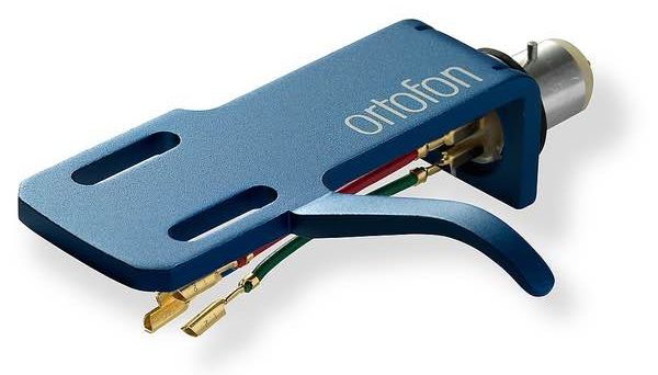 Headshell con design ergonomico e leva di sollevamento lunga, colore blu, completa di fili con terminali dorati, peso 9,4 g, lunghezza calotta 51,5 mm, lunghezza leva di sollevamento 27 mm.
