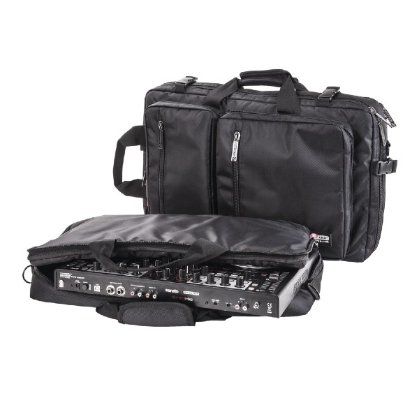 Borsa in poliestere idrorepellente per il trasporto di controller per DJ, con vano principale dotato di pad removibili, indicata per Reloop Jockey 3 Remix e TerminalMix 2, Vestax VCI-380 e VCI-400, Native Instruments S2 e S4, Numark Mixtrack Pro 3 e Multitrack Quad, Pioneer DDJ-Ergo e molti altri. Sono inoltre disponibili un vano adattabile per il trasporto di laptop computer / MacBook fino a 15”, un vano per Interfaccie audio e cavi, varie tasche per memory stick, penne e telefono cellulare. Dimensioni esterne mm 580x350x155. Dimensioni interne massime del vano principale mm 550x330x45. Colore nero. Peso kg 2,4.