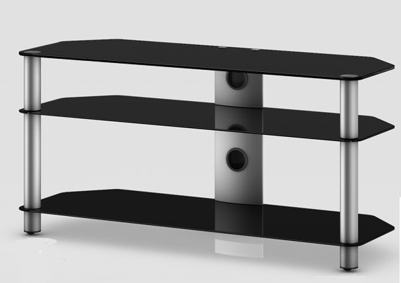 SONORUS NEO 3110-B-SLV SUPPORTO PER TELEVISORE FINO A 46″ 3 RIPIANI IN VETRO E METALLO CON RUOTE COLORE NERO E SILVER