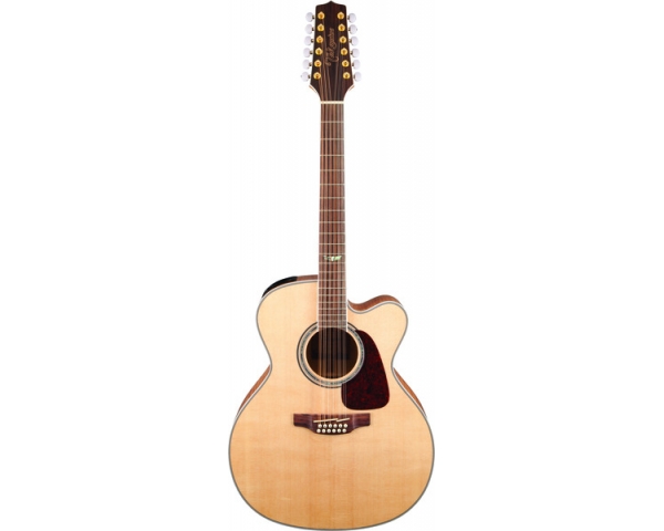 TAKAMINE SERIE G CINA Chitarra acustica stile jumbo 12 corde, spalla mancante, tavola armonica in abete massello fondo e fasce in palissandro tastiera in palissandro ponte in palissandro capotasto e selletta split in osso sintetico hardware dorato con bottone ambra preamplificatore TK40D con accordatore integrato finitura naturale lucida corde D’Addario EXP16 (.12-053)