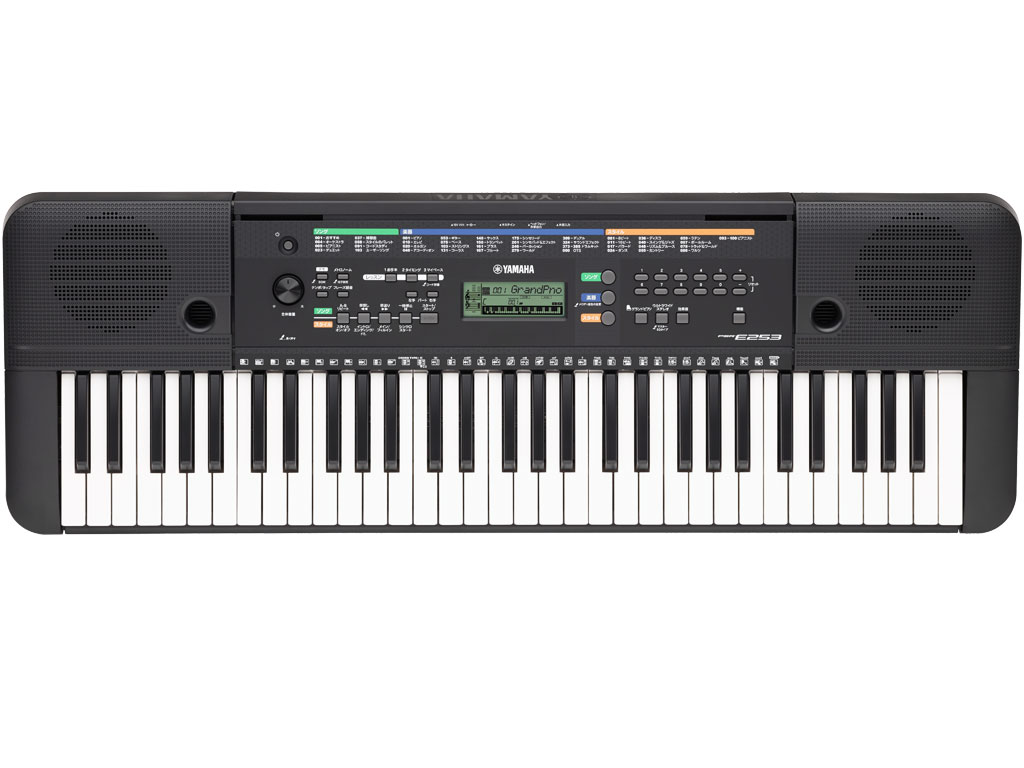 Fare musica con le tastiere digitali PSR-E253 si tramuta in un’esperienza divertente e piacevole. Voci strumentali autentiche e una grande varietà di stili di accompagnamento da tutto il mondo sono combinate con funzioni educational per un percorso di apprendimento adatto a studenti di musica di tutte le età. La funzione Yamaha Education Suite (Y.E.S) presenti su questo modello comprende più di 100 brani incorporati. Gli studenti passano attraverso vari stadi di apprendimento con l’ausilio di utili informazioni visualizzate sul display e funzioni interattive quali l’attesa per le note giuste da suonare. La tastiera valuterà le esecuzioni per incoraggiare l’utente a sviluppare maggiormente le proprie capacità. La nuova modalità Duo divide la tastiera in due parti identiche, ciascuna con un Do centrale, ottimo per insegnante/allievo nelle sessioni di studio. La registrazione incorporata è disponibile anche con Phrase Recording ad un tocco su PSR-E253 e un registratore a 2 tracce. E’ disponibile inoltre un ingresso per la riproduzione musicale attraverso il sistema audio della tastiera.